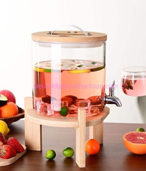 Bình đựng nước ép trái cây buffet TPTT4003 có chân đế bằng gỗ.